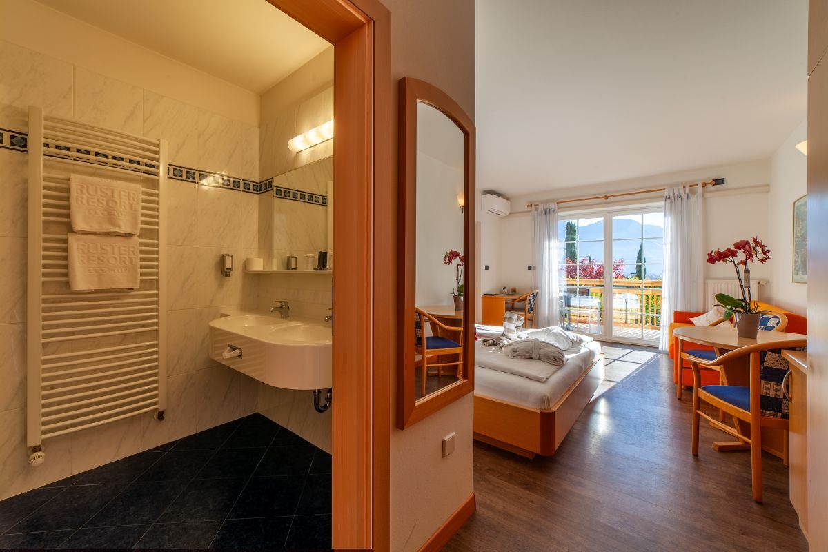 Schönes Doppelzimmer im Livehotel Friedheim mit Südbalkon und Blick auf Meran, Dusche/WC, Klimaanlage, Minibar, SAT-TV, Radiowecker und Safe. Dieses Zimmer bietet Platz für maximal 3 Personen. Gerne stellen wir Ihnen zusätzlich auf Anfrage ein Bett für Ihr Kleinkind (0-2 Jahre) gegen einen Aufpreis von 10,-€ zur Verfügung. |